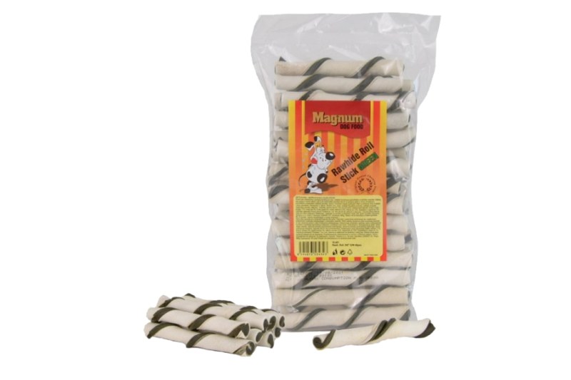 - Krmivo pre psov Rawhide roll stick 12,5cm (cca 40ks) GREEN/WHITE